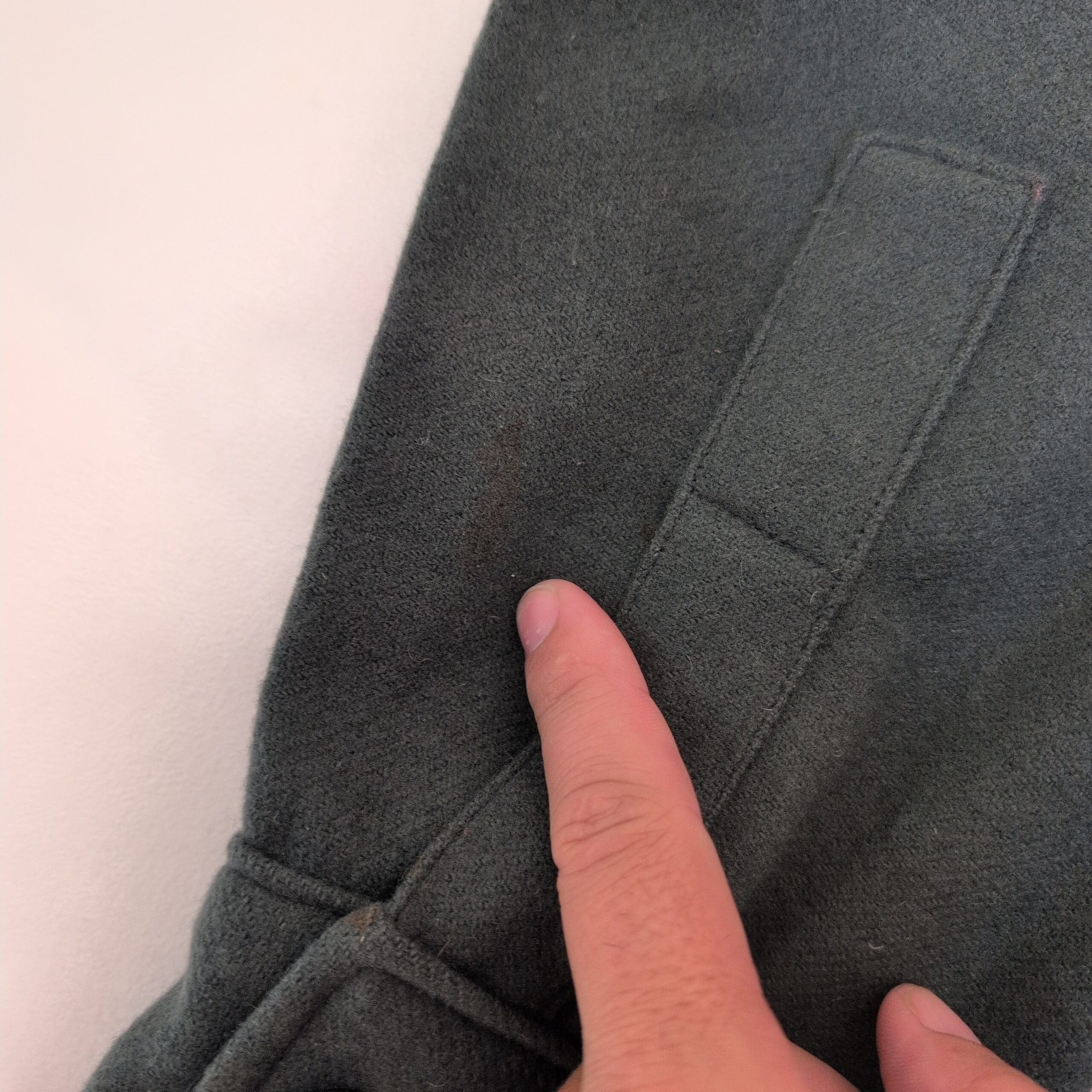 Condition: Pre-owned with an extremely light discoloration on the right sleeve cuff — see photos for detail. No other notable defects observed.