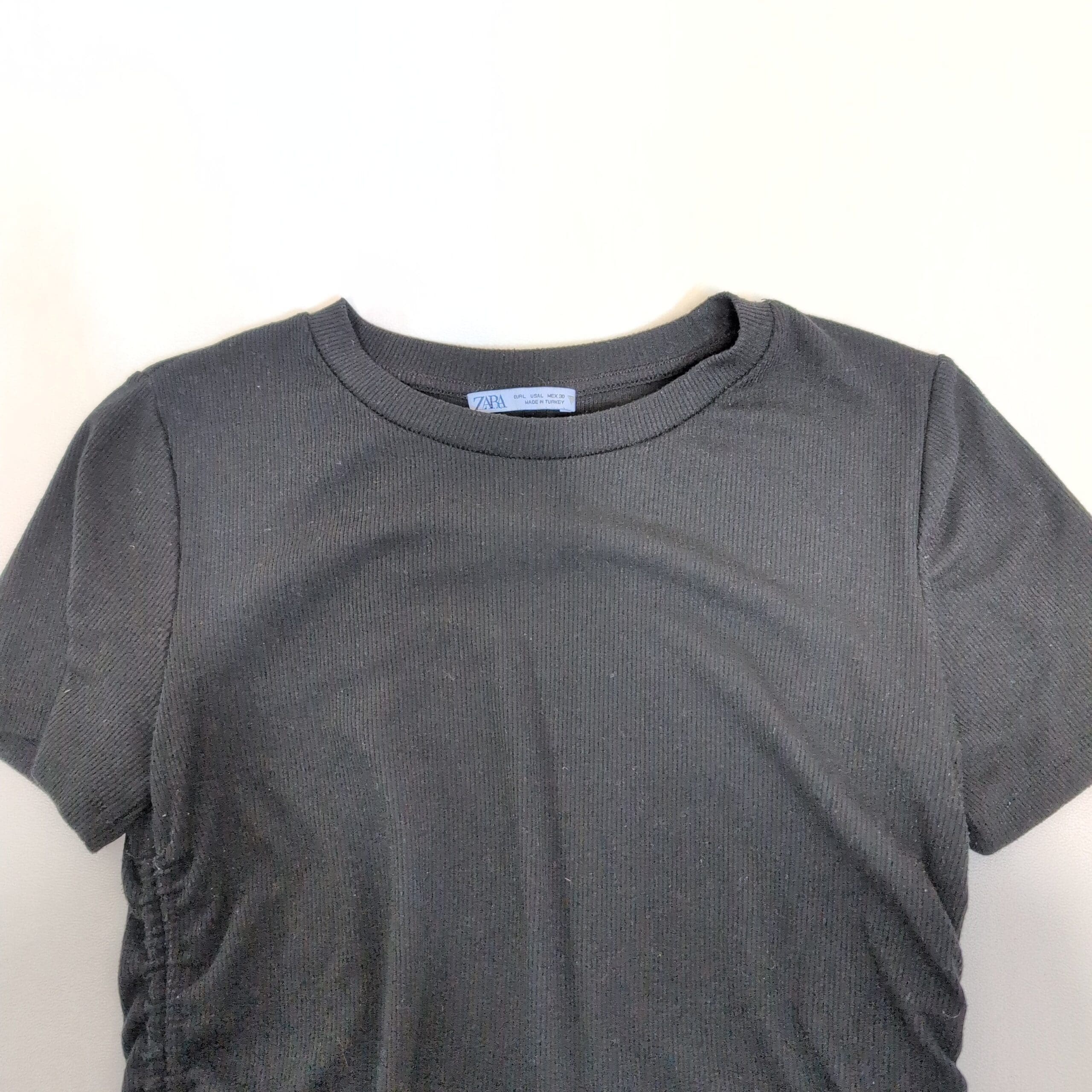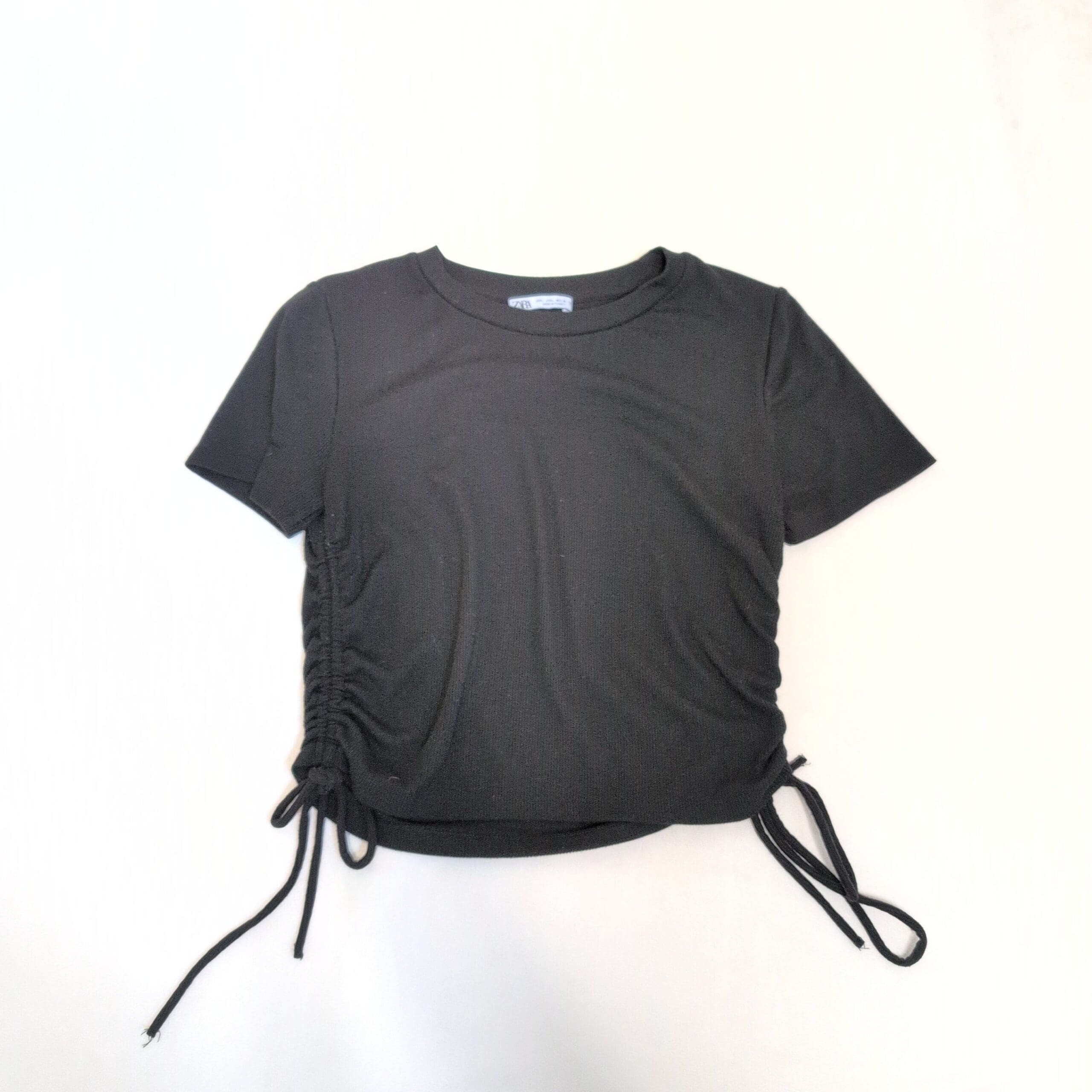 Zara Black Short Sleeve Ruched Side Tee – Size L